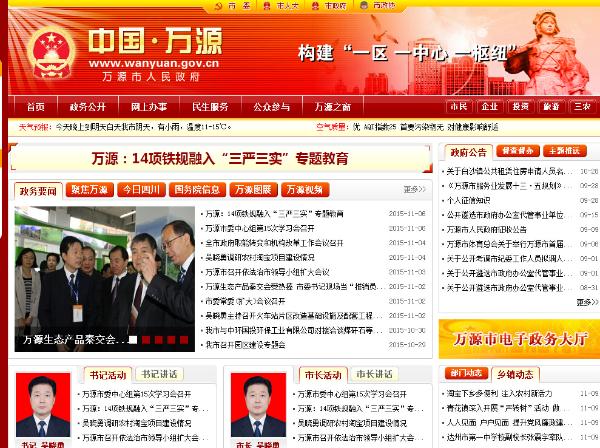 行政区划编辑据政府官网2014年8月信息显示,万源市下辖12个镇(太平镇、青花镇、旧院镇、罗文镇、河口镇、草坝镇、竹峪镇、大竹镇、黄钟镇、官渡镇、白沙镇、沙滩镇)、40个乡(茶垭乡、长石乡、白羊乡、铁矿乡、固军乡、井溪乡、堰塘乡、蜂桶乡、花楼乡、长坝乡、曾家乡、大沙乡、秦河乡、庙垭乡、鹰背乡、石窝乡、玉带乡、新店乡、魏家乡、柳黄乡、溪口乡、永宁乡、虹桥乡、康乐乡、白果乡、钟亭乡、庙子乡、紫溪乡、庙坡乡、梨树乡、皮窝乡、丝罗乡、罐坝乡、石人乡、赵塘乡、中坪乡、八台乡、花萼乡、曹家乡、石塘乡)。