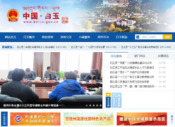 白玉县隶属四川省甘孜藏族自治州,地处青藏高原向云贵高原的过渡地带,属横断山脉北段,金沙江上游东岸。位于东经98度36分至99度56分与北纬30度22分至31度40分之间。东与新龙县接壤,南与巴塘、理塘两县毗邻,西隔金沙江与西藏贡觉、江达县相望,北与甘孜县、德格县交界。至2011年底,白玉县辖区面积10591平方公里,辖1镇、16乡共156个行政村,2011年末总人口5.36万人,人口出生率8.64‰,人口自然增长率6.67‰。2011年,白玉县实现地区生产总值8.69亿元,比2010年增长9.7%。其中第一产业增加值2亿元,第二产业增加值5.13亿元,第三产业增加值1.55亿元,实现工业增加值4.77亿元。白玉县具特色的白玉县城。依山傍水,金沙江支流偶曲河水穿中而过,形成面积20万平方米的河东、河西两条主街。集现代建筑风格与民族特色于一体。白玉县北有海子雪山,日照如白玉,故名。一说系藏语白藏之意,藏俗谓白为护法神,玉为地域,即护法神所在之地,意为平安幸福。