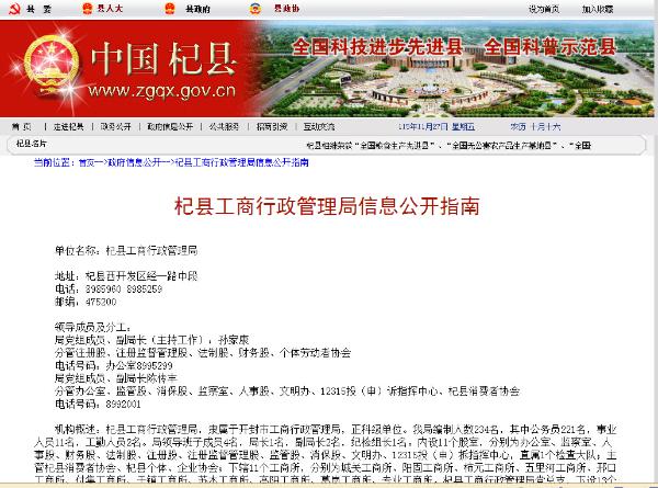 杞县工商局官网上http://www.zgqx.gov.cn/zwgk2008/1xqxxgsj2013000.htm您可以了解到工商动态、监管执法、服务发展消费维权等各方面的信息,此外您还可以了解到网上办事等基本信息,此外还可以清楚的知道该工商局的地址以及联系方式。